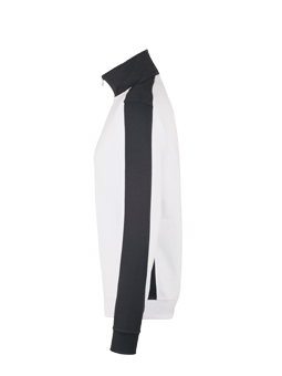 Besonders leistungsfähiges und funktionelles Sweatshirt mit praktischem Frontreißverschluss von YKK ®. Weicher, durch den Polyester-Anteil besonders pflegeleichter und strapazierfähiger HAKRO ®-Performance-Materialmix MIKRALINAR® mit kontrastfarbigen Einsätzen an den Seiten, Schultern und Ärmeln. Die Innenseite ist nicht angeraut, die formstabilen Rippstrickbündchen sind zusätzlich mit LYCRA® verstärkt.