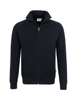 Sweatjacke im College-Stil aus pflegeleichter Baumwoll-Polyester-Mischung für höchste Ansprüche. Die modisch breiten, formstabilen Rippstrickbündchen sind zusätzlich mit LYCRA® verstärkt. Sportlicher Raglan-Schnitt und Frontreißverschluss von YKK®.